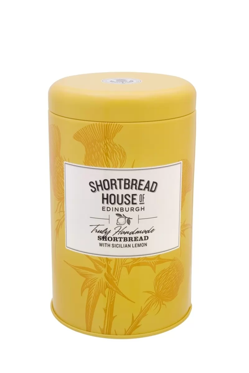 Cutia metalica de biscuiti scotieni Shortbread contine 7 biscuiti facuti cu UNT SI LAMAIE SICILIANA, ceea ce ii ofera un gust aparte, datorita retetei care se transmite din generatie in generatie acestia au o textura fina si se topesc in gura