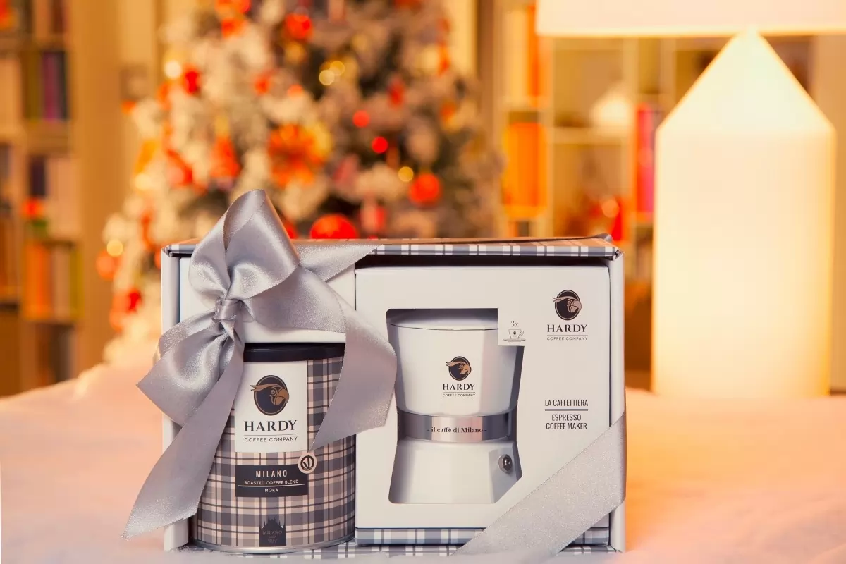 Pachetul contine un espresor manual si o cutie de cafea macinanata Hardy Europa de 250g