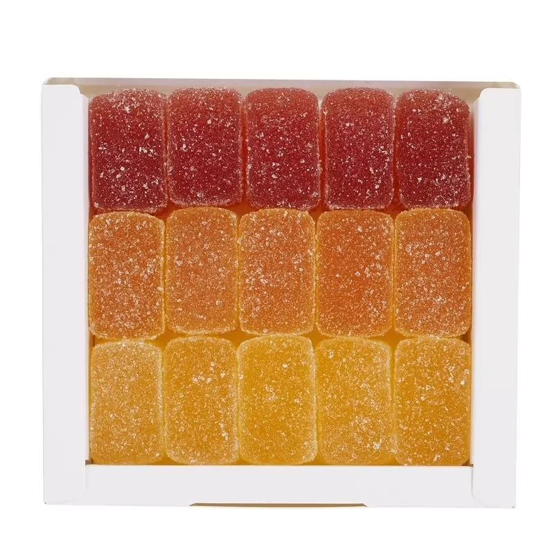 Cutia contine 15 jeleuri cu fructe, cu 3 arome: mango, rodie si ananas.