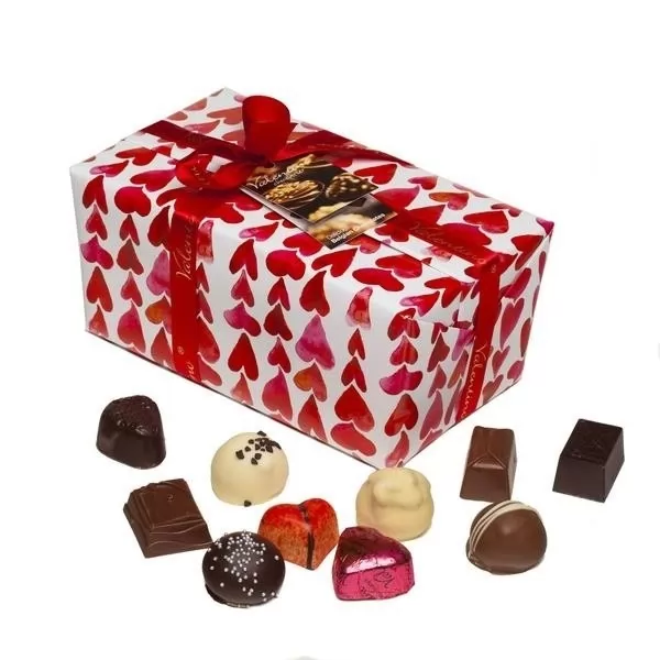 Cutie cu praline asortate de ciocolata belgiana Red Hearts Valentino 935g