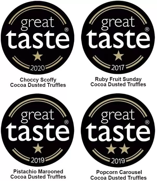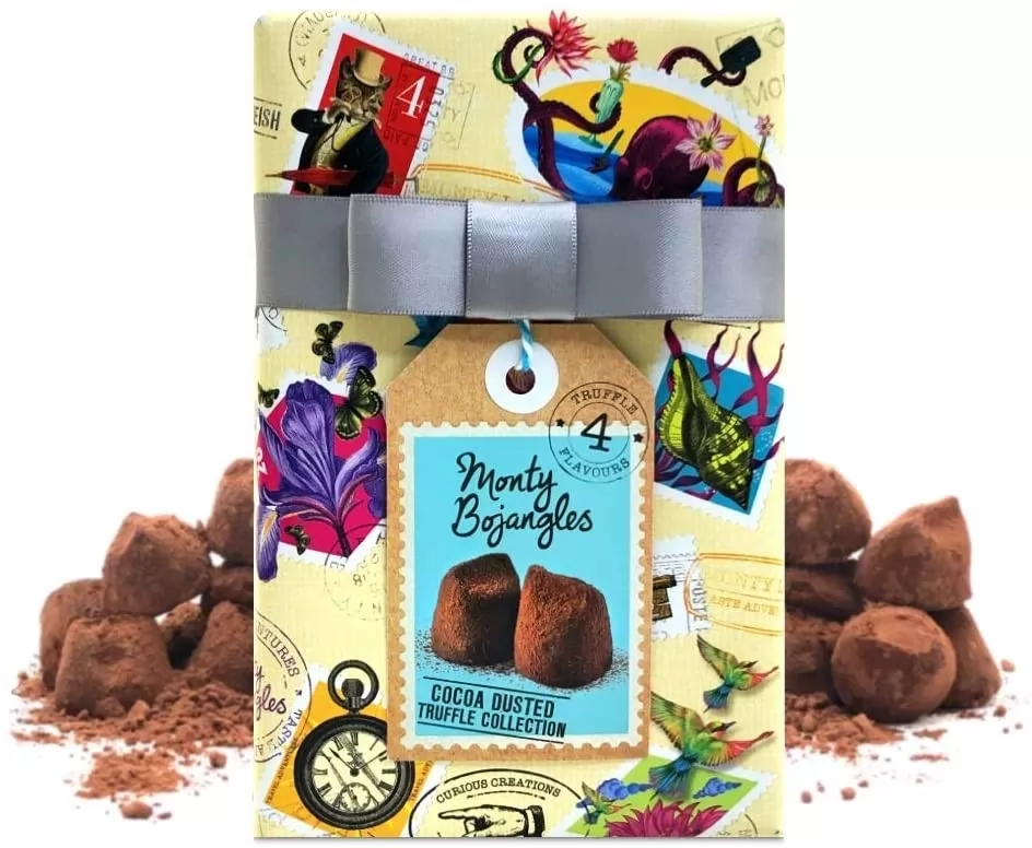 Cutia contine trufe frantuzesti cu ciocolata neagra si alte sortimente, toate acoperite cu un strat generos de cacao dulce-amaruie. Reteta traditionala dateaza inca din anul 1934, fiind conceputa pentru prima data in Angers, Franta. Cutia are un aspect pe care nu il poti uita usor, plin de viata datorita designului si poate fi daruita ca o mica atentie sau chiar pentru propriul rasfat.