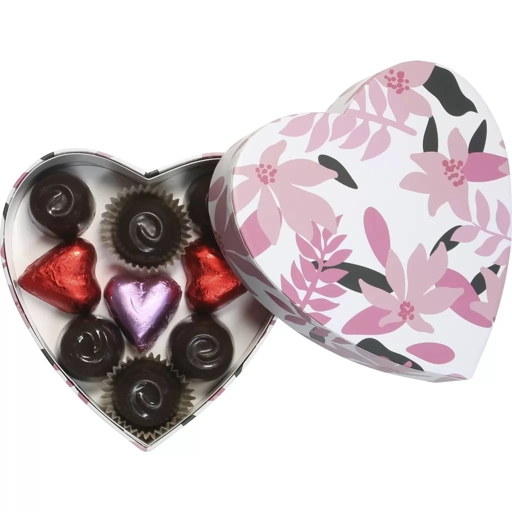Cutie inima cu 9 praline din ciocolata belgiana Valentino135 G.Pralinele pot varia ca sortimente, poza produsului este de prezentare.