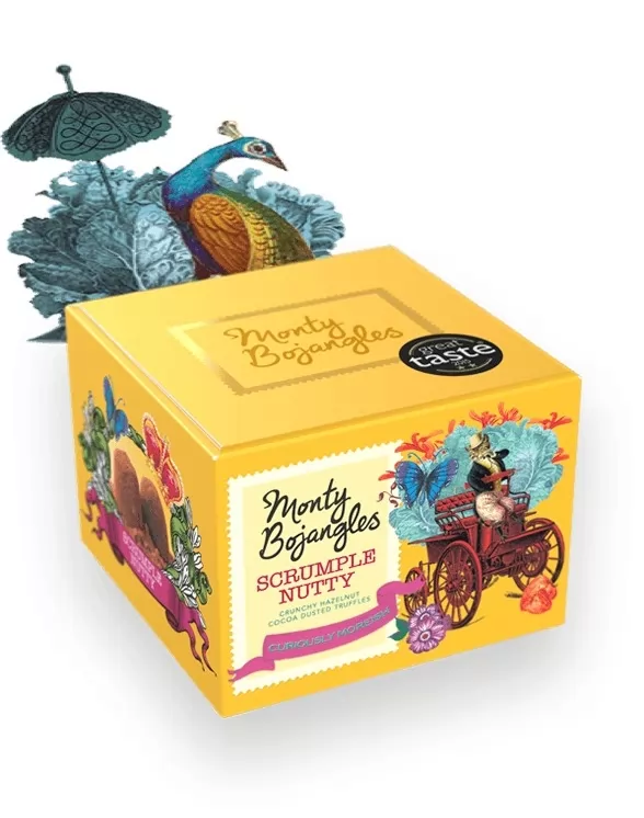 Trufe frantuzesti cu ciocolata cu lapte si alune crocante. Reteta traditionala dateaza inca din anul 1934, fiind conceputa pentru prima data in Angers, Franta. Cutia are un aspect pe care nu il poti uita usor, plin de viata datorita designului si poate fi daruita ca o mica atentie sau chiar pentru propriul rasfat.